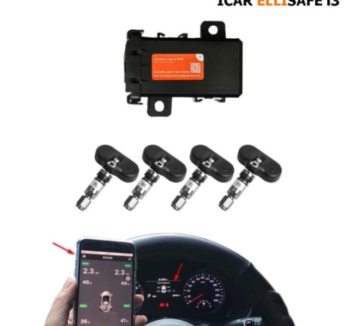 Cảm Biến Áp Suất Lốp Theo Xe ELLISAFE I3 (Hiển Thị ODO) Quản Lý Bằng Điện Thoại